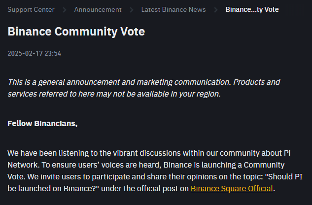 Binance Community Vote | Binance Announcements ,Binance News,PI