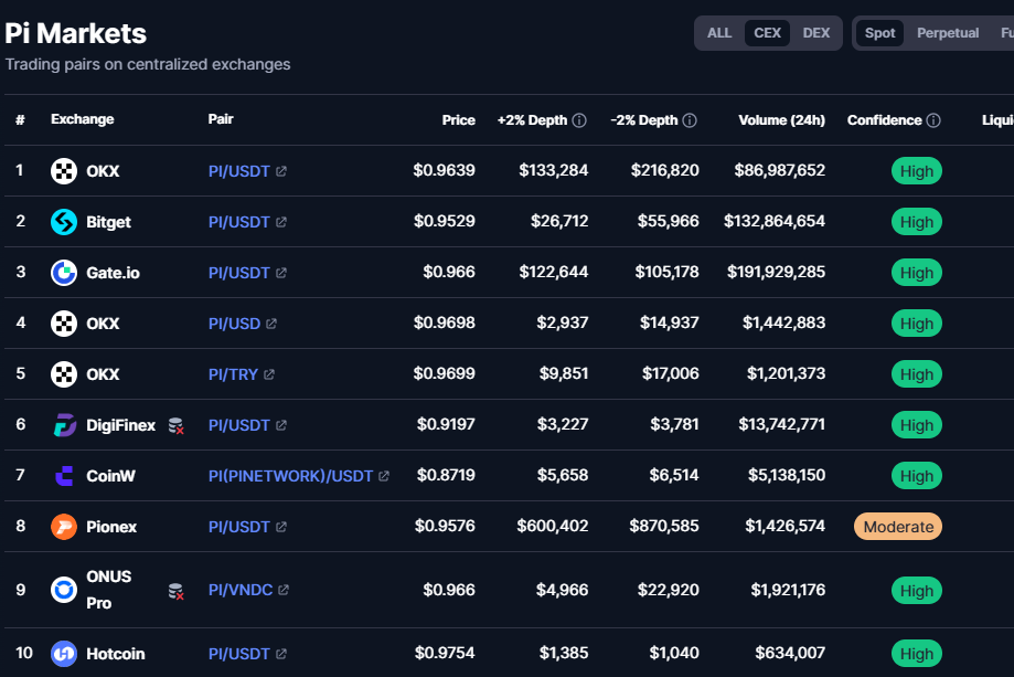 현재 파이코인이 상장된 거래소들