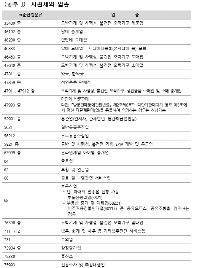 이번 지원금은 전년도 매출액이 1억 400만 원 미만인 대전시 내 소상공인 약 8만 6,400개 업체를 대상으로 합니다. 다만, 공고일 기준으로 영업중이어야해요. 휴·폐업 중이거나, 전년도 매출액이 없는 사업자, 비영리 기업·단체·법인 및 법인격이 없는 조합은 지원대상에서 제외됩니다.