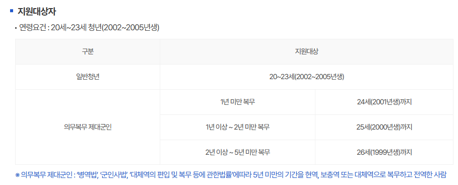 ✅ 연령 요건: 2002년부터 2005년 사이에 출생한 20세~23세 청년