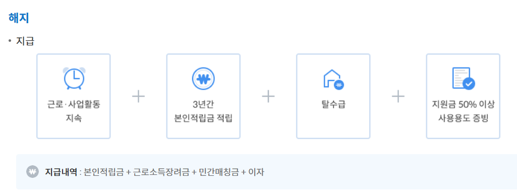 - 가입 기간 동안 근로소득 유지와 교육 및 상담 이수 등의 조건을 충족해야 합니다.