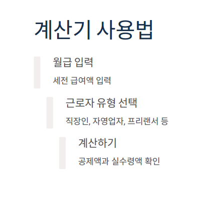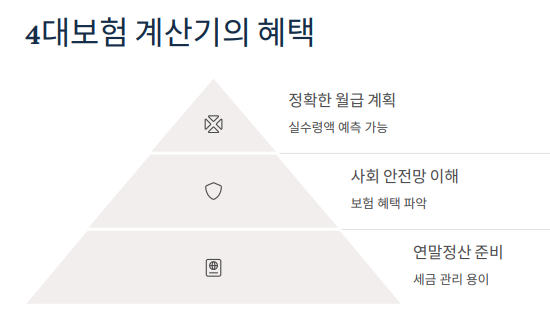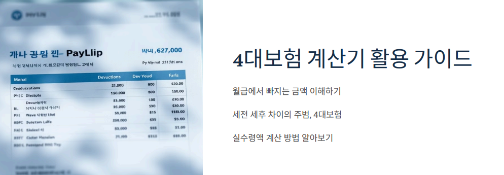 4대보험 계산기는 자신의 세전 월급만 입력하면, 국민연금·건강보험·고용보험·장기요양보험 등의 공제 금액을 자동으로 계산해주는 도구입니다.