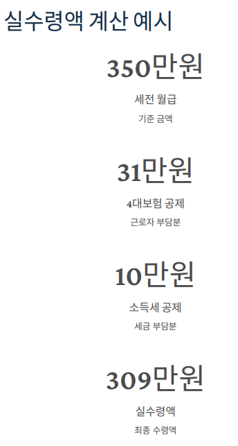 실수령액 계산 예시 (월급 3,500,000원 기준)
