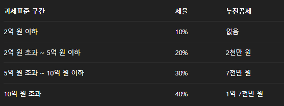 이 세율은 면제 한도액을 초과한 금액에만 적용돼요. 따라서 가능한 한 면제 기준 안에 들어가도록 설계하는 게 중요해요.
